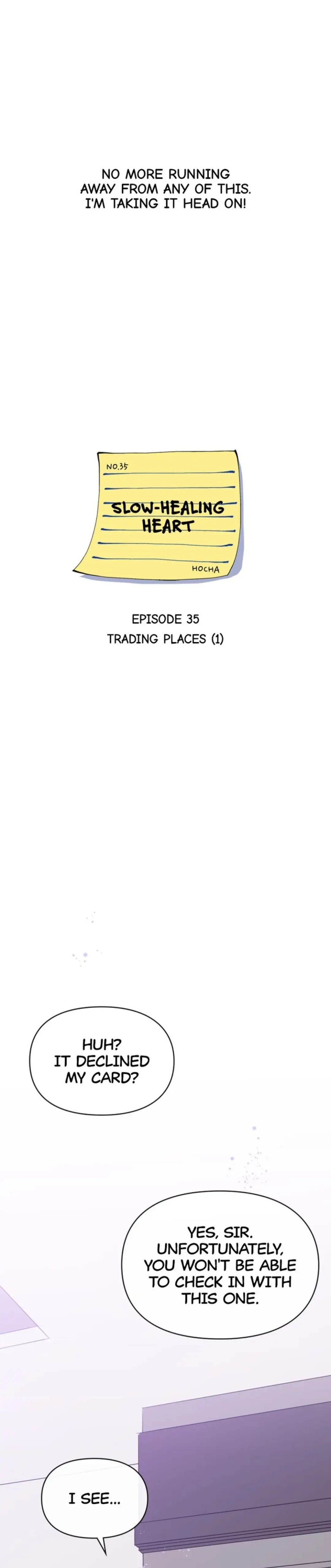 Read the latest manga Slow-Healing Heart 35 at Arenascans . Manga Slow-Healing Heart is always updated at Arenascans . Dont forget to read the other manga updates. A list of manga collections Arenascans is in the Manga List menu.