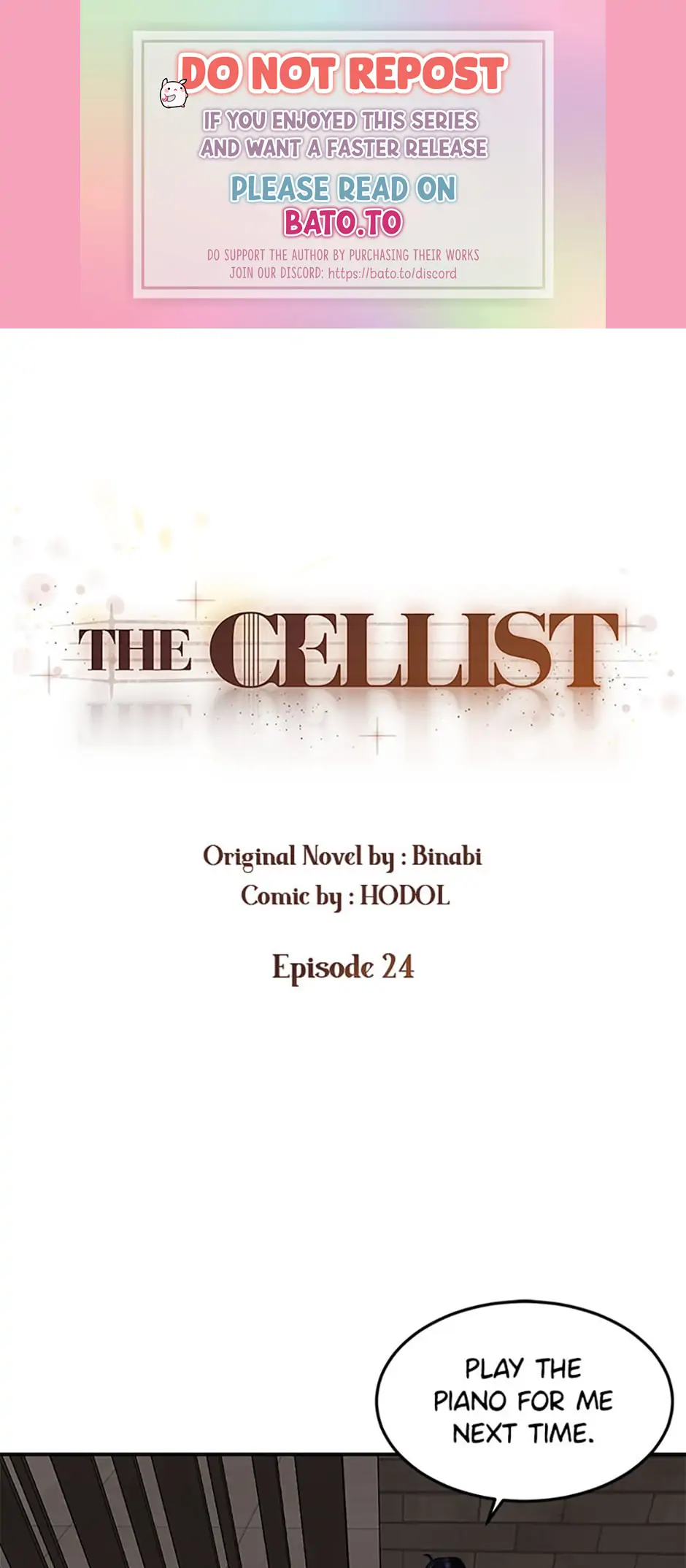 Read the latest manga The Cellist 24 at Arenascans . Manga The Cellist is always updated at Arenascans . Dont forget to read the other manga updates. A list of manga collections Arenascans is in the Manga List menu.