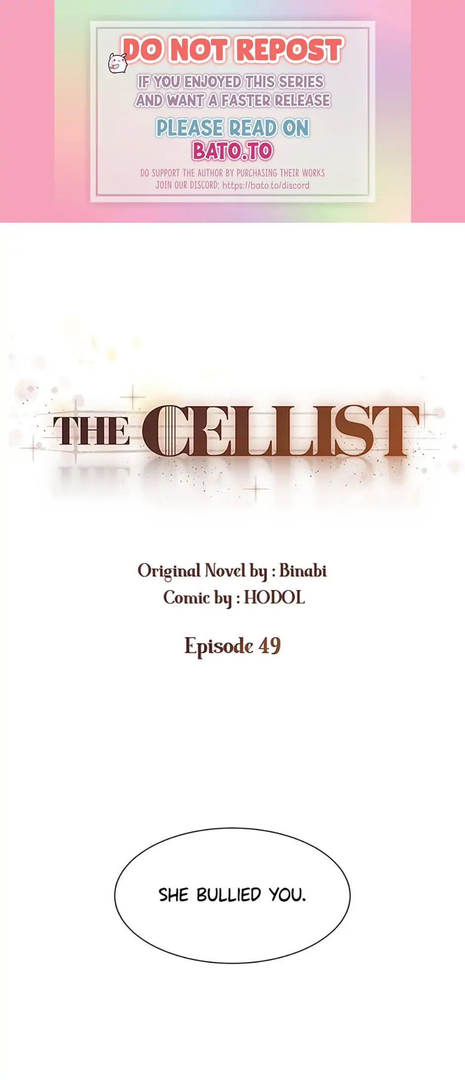 Read the latest manga The Cellist 49 at Arenascans . Manga The Cellist is always updated at Arenascans . Dont forget to read the other manga updates. A list of manga collections Arenascans is in the Manga List menu.