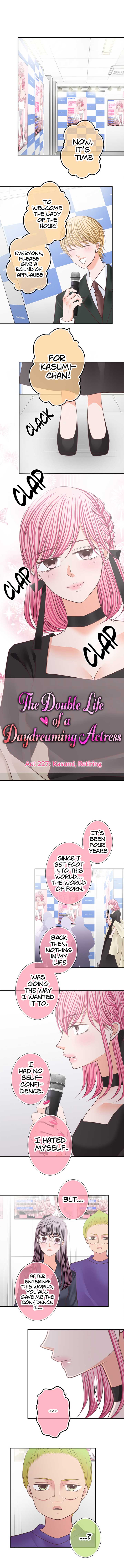 Read the latest manga The Double Life of a Daydreaming Actress 227 at Arenascans . Manga The Double Life of a Daydreaming Actress is always updated at Arenascans . Dont forget to read the other manga updates. A list of manga collections Arenascans is in the Manga List menu.