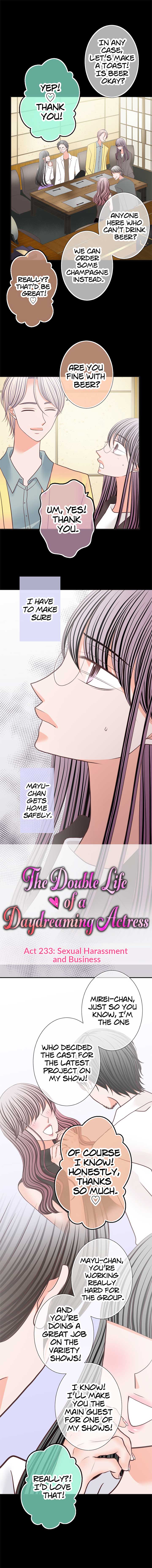 Read the latest manga The Double Life of a Daydreaming Actress 233 at Arenascans . Manga The Double Life of a Daydreaming Actress is always updated at Arenascans . Dont forget to read the other manga updates. A list of manga collections Arenascans is in the Manga List menu.