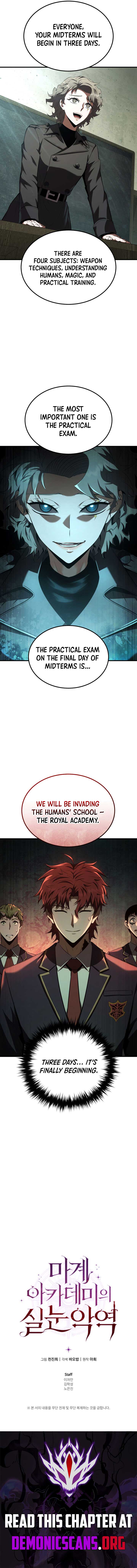 Read the latest manga The Fox-Eyed Villain of the Demon Academy 34 at Arenascans . Manga The Fox-Eyed Villain of the Demon Academy is always updated at Arenascans . Dont forget to read the other manga updates. A list of manga collections Arenascans is in the Manga List menu.