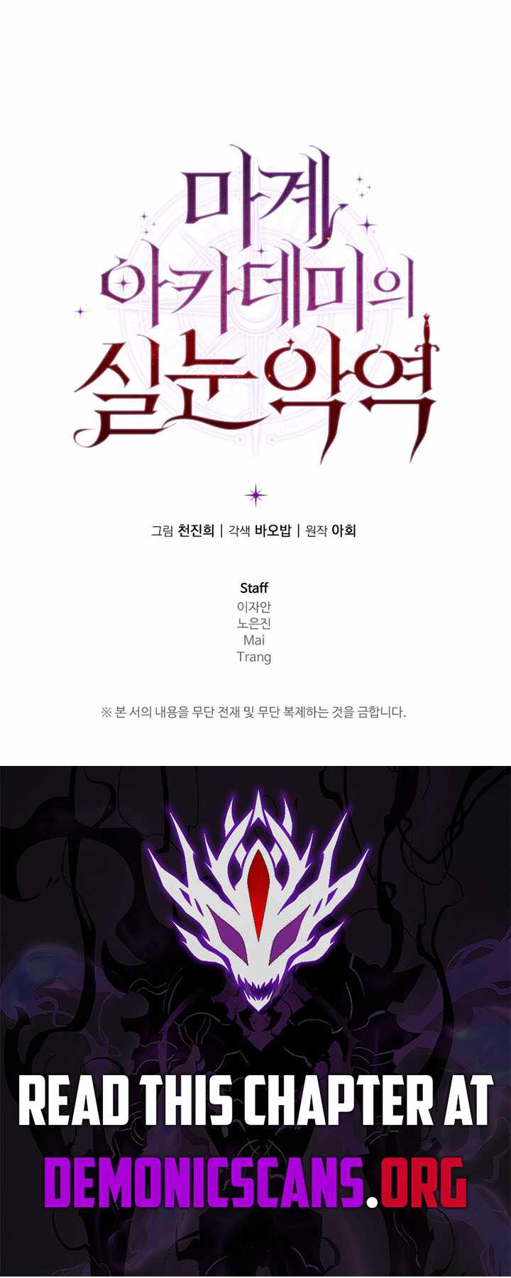 Read the latest manga The Fox-Eyed Villain of the Demon Academy 50 at Arenascans . Manga The Fox-Eyed Villain of the Demon Academy is always updated at Arenascans . Dont forget to read the other manga updates. A list of manga collections Arenascans is in the Manga List menu.