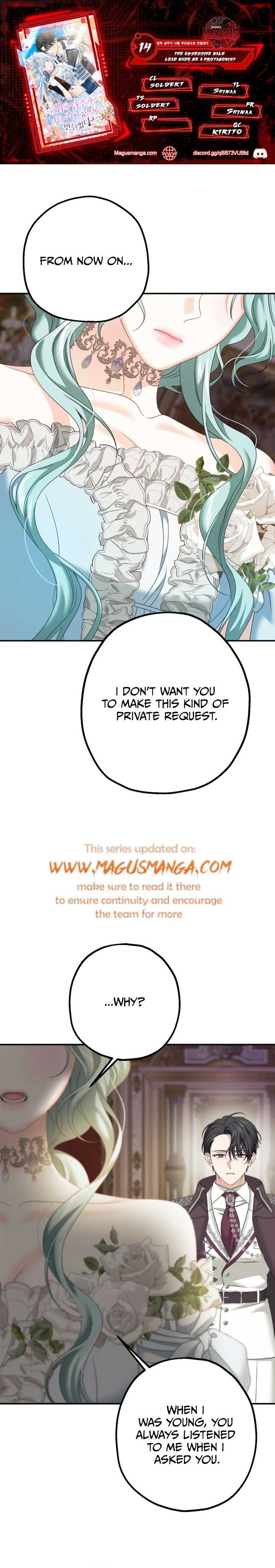 Read the latest manga The Obsessive Male Lead Made Me The Female Lead 14 at Arenascans . Manga The Obsessive Male Lead Made Me The Female Lead is always updated at Arenascans . Dont forget to read the other manga updates. A list of manga collections Arenascans is in the Manga List menu.