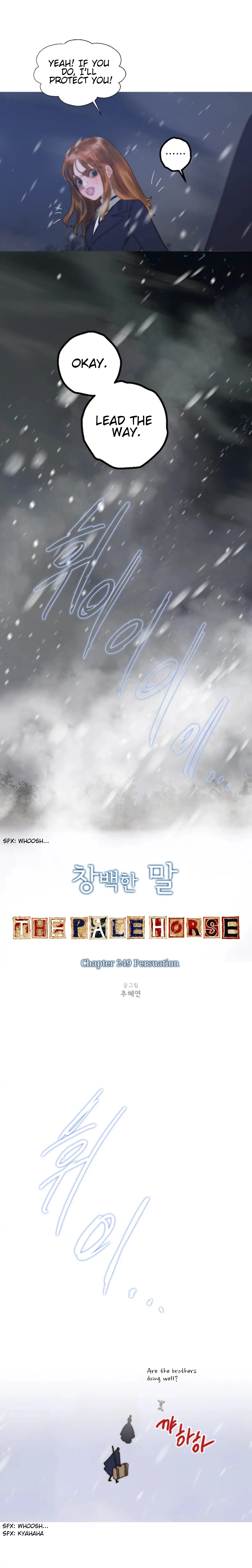 Read the latest manga The Pale Horse 249 at Arenascans . Manga The Pale Horse is always updated at Arenascans . Dont forget to read the other manga updates. A list of manga collections Arenascans is in the Manga List menu.