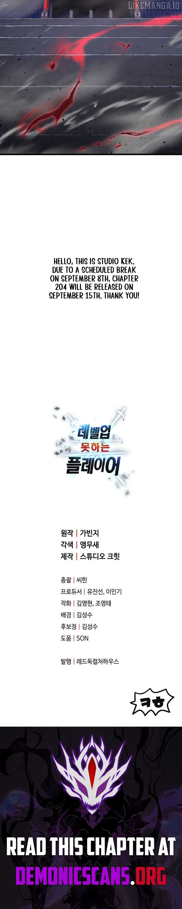 Read the latest manga The Player that can’t Level Up 203 at Arenascans . Manga The Player that can’t Level Up is always updated at Arenascans . Dont forget to read the other manga updates. A list of manga collections Arenascans is in the Manga List menu.