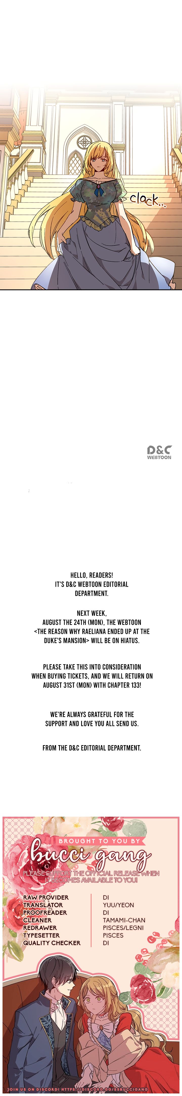 Read the latest manga The Reason Why Raeliana Ended up at the Duke’s Mansion 132 at Arenascans . Manga The Reason Why Raeliana Ended up at the Duke’s Mansion is always updated at Arenascans . Dont forget to read the other manga updates. A list of manga collections Arenascans is in the Manga List menu.