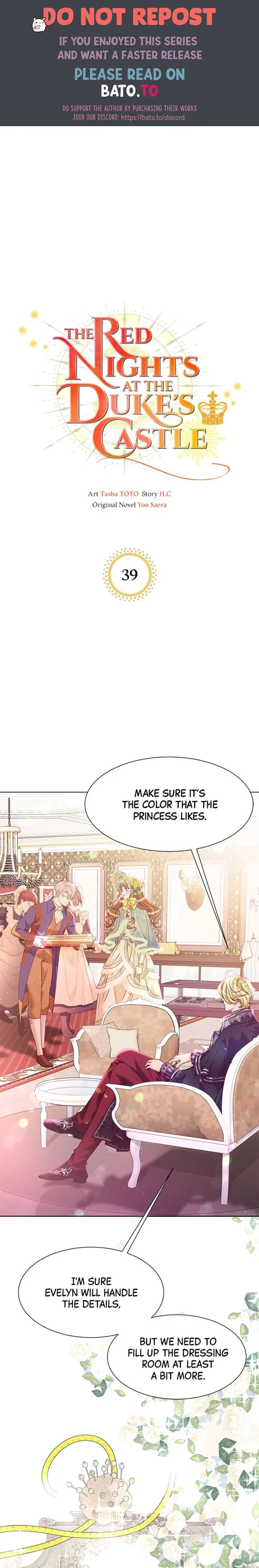 Read the latest manga The Red Nights at the Duke’s Castle 39 at Arenascans . Manga The Red Nights at the Duke’s Castle is always updated at Arenascans . Dont forget to read the other manga updates. A list of manga collections Arenascans is in the Manga List menu.