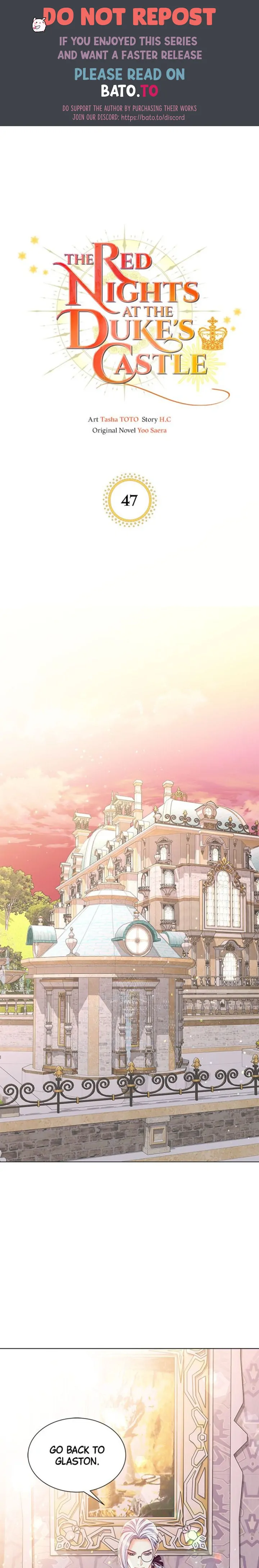 Read the latest manga The Red Nights at the Duke’s Castle 47 at Arenascans . Manga The Red Nights at the Duke’s Castle is always updated at Arenascans . Dont forget to read the other manga updates. A list of manga collections Arenascans is in the Manga List menu.