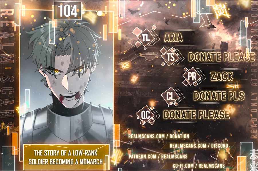 Read the latest manga The Story of a Low-Rank Soldier Becoming a Monarch 104 at Arenascans . Manga The Story of a Low-Rank Soldier Becoming a Monarch is always updated at Arenascans . Dont forget to read the other manga updates. A list of manga collections Arenascans is in the Manga List menu.