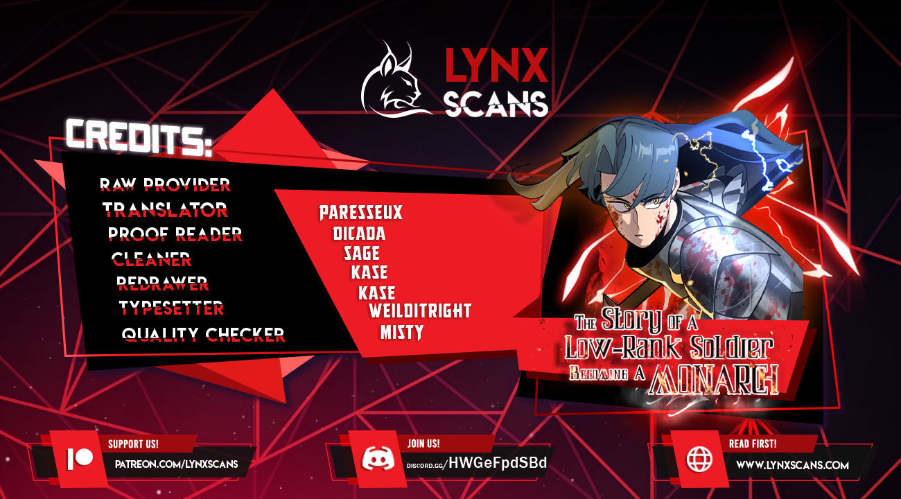 Read the latest manga The Story of a Low-Rank Soldier Becoming a Monarch 47 at Arenascans . Manga The Story of a Low-Rank Soldier Becoming a Monarch is always updated at Arenascans . Dont forget to read the other manga updates. A list of manga collections Arenascans is in the Manga List menu.
