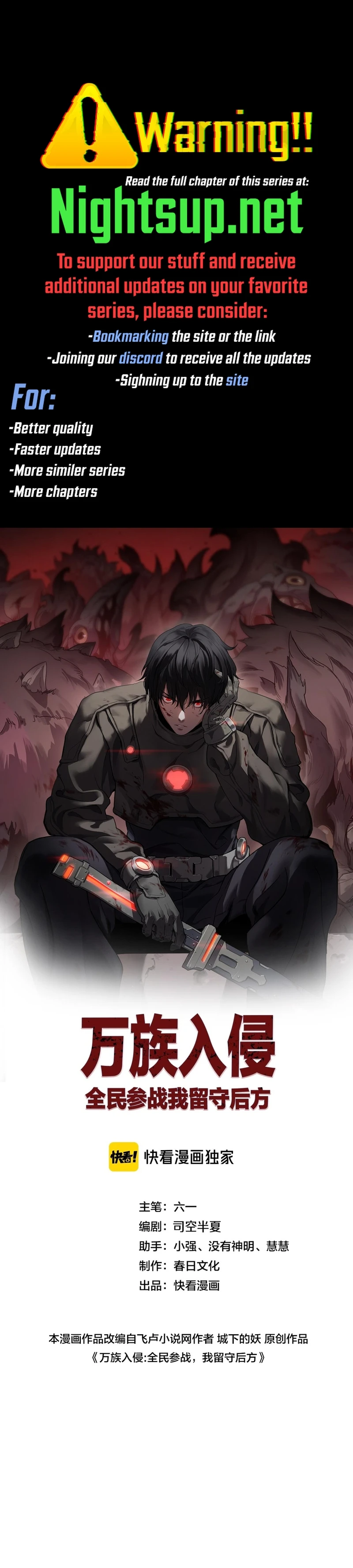 Read the latest manga The Ten Thousand Races Invasion: Guardian of the Rear 34 at Arenascans . Manga The Ten Thousand Races Invasion: Guardian of the Rear is always updated at Arenascans . Dont forget to read the other manga updates. A list of manga collections Arenascans is in the Manga List menu.