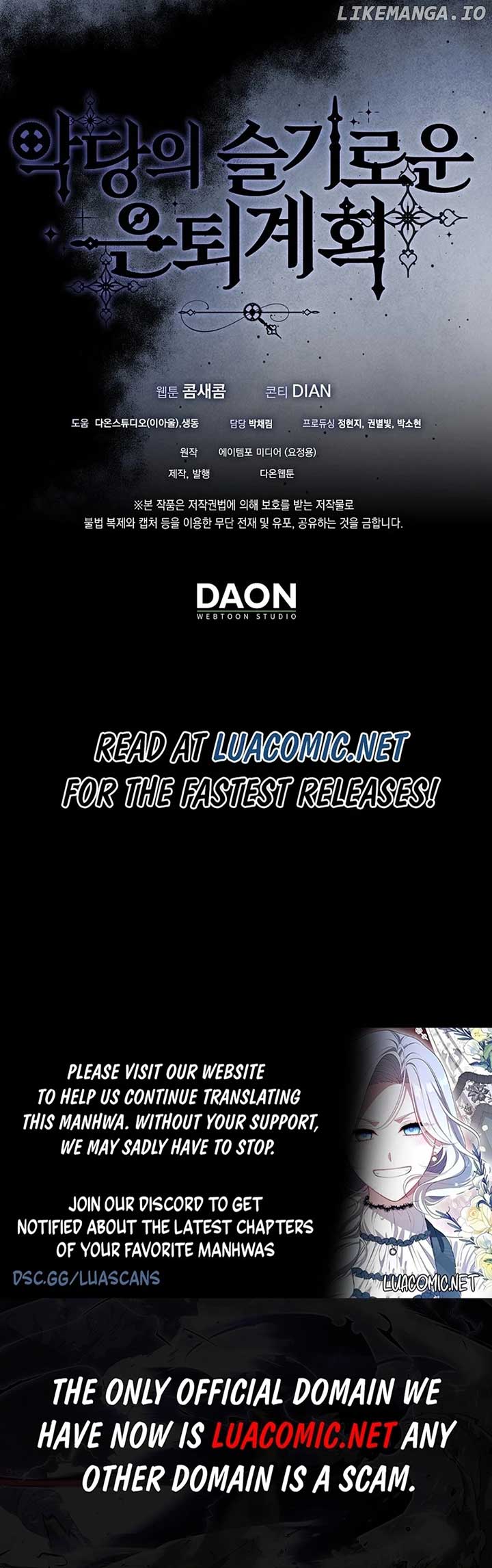 Read the latest manga The Villainess’s Wise Retirement Plan 19 at Arenascans . Manga The Villainess’s Wise Retirement Plan is always updated at Arenascans . Dont forget to read the other manga updates. A list of manga collections Arenascans is in the Manga List menu.