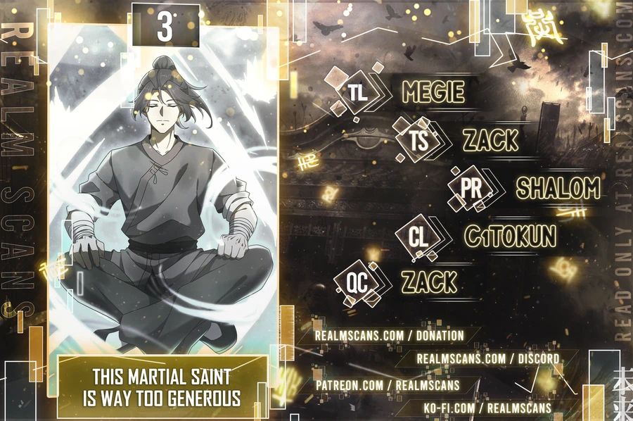 Read the latest manga This Martial Saint Is Way Too Generous 3 at Arenascans . Manga This Martial Saint Is Way Too Generous is always updated at Arenascans . Dont forget to read the other manga updates. A list of manga collections Arenascans is in the Manga List menu.