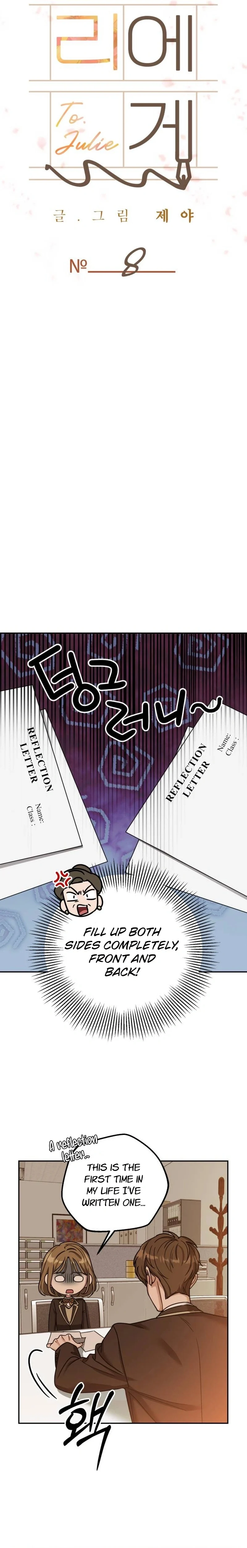 Read the latest manga To Julie 8 at Arenascans . Manga To Julie is always updated at Arenascans . Dont forget to read the other manga updates. A list of manga collections Arenascans is in the Manga List menu.
