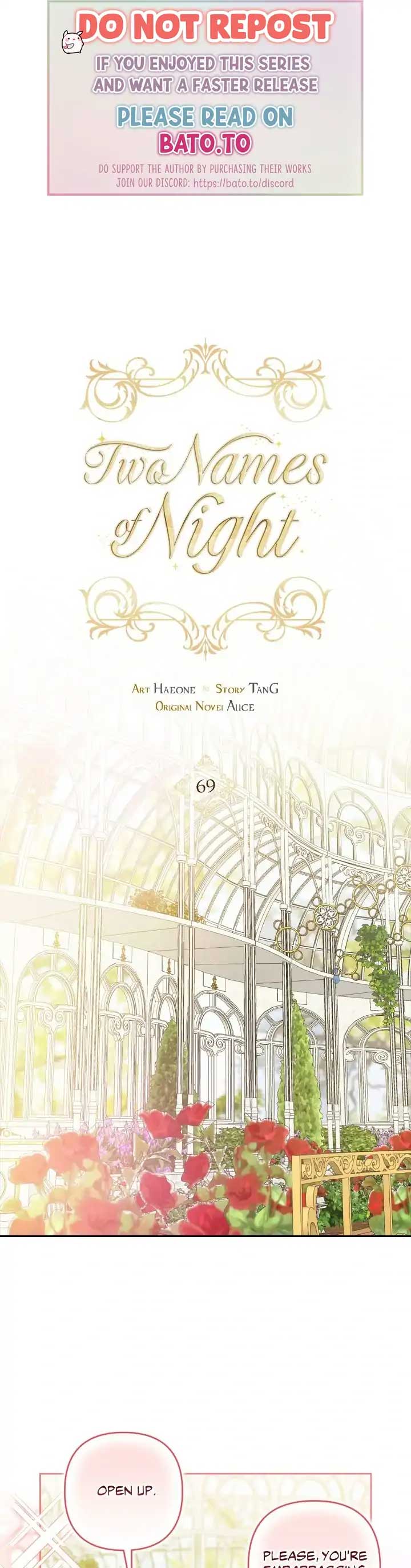 Read the latest manga Two Names of Night 69 at Arenascans . Manga Two Names of Night is always updated at Arenascans . Dont forget to read the other manga updates. A list of manga collections Arenascans is in the Manga List menu.