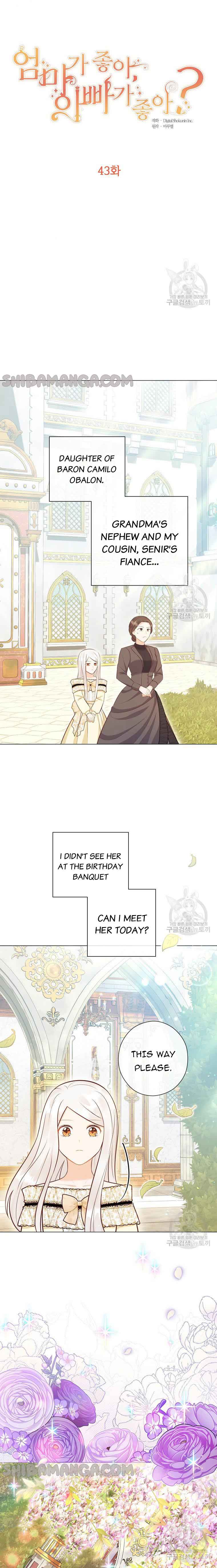 Read the latest manga Who Do You Like More, Mommy or Daddy? 43 at Arenascans . Manga Who Do You Like More, Mommy or Daddy? is always updated at Arenascans . Dont forget to read the other manga updates. A list of manga collections Arenascans is in the Manga List menu.