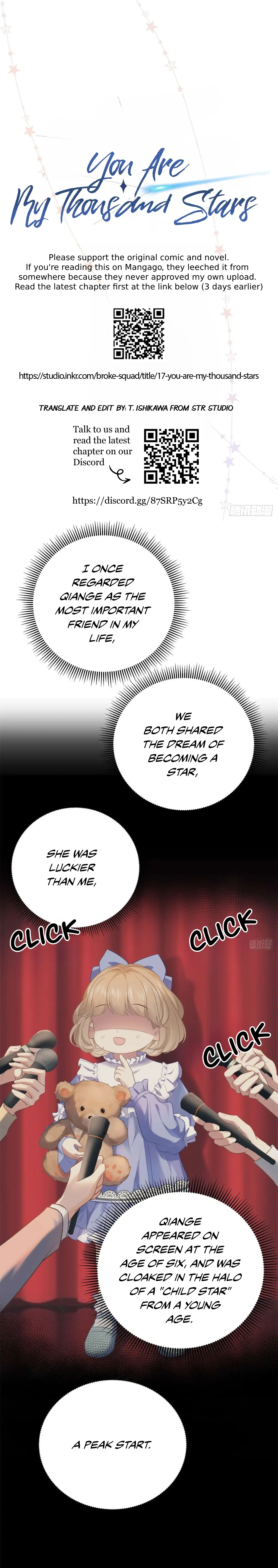 Read the latest manga You Are My Thousand Stars 14 at Arenascans . Manga You Are My Thousand Stars is always updated at Arenascans . Dont forget to read the other manga updates. A list of manga collections Arenascans is in the Manga List menu.